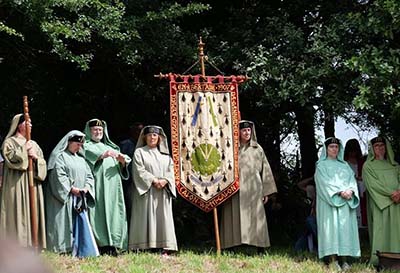 Grand Bard Melennek, Elizabeth Carne went to Brittany for the Open Gorsedh in Brittany. Grand Druid Per-Vari Kerloc’h led the ceremony, near to Brasparts. 2019 is the 120th birthday of the Breton Gorsedh. The ceremony was very good and the Grand Bard was very happy to be there. Gwas Lowenek, Roger Henley, took part in the joining of the sword. |
